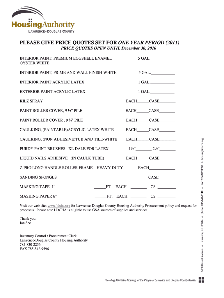 PLEASE GIVE PRICE QUOTES SET FOR ONE-YEAR PERIOD (2011) INTERIOR PAINT, PREMIUM EGGSHELL ENAMEL OYSTER WHITE 5 GAL. INTERIOR PAINT, PRIME AND WALL FINISHWHITE 5 GAL. INTERIOR PAINT ACRYLIC LATEX 1