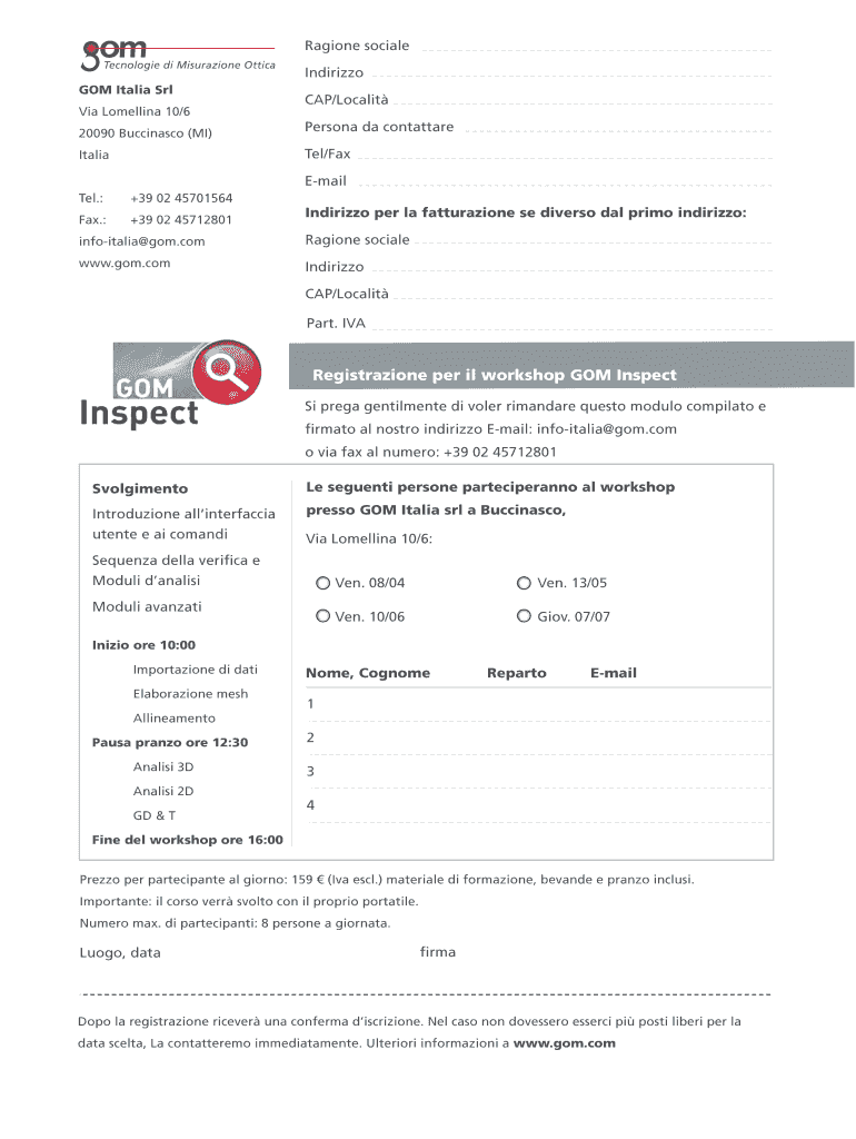Il gom inspect seminarflyer ital deve essere compilato con le proprie informazioni personali e inviato prima della data limite.
