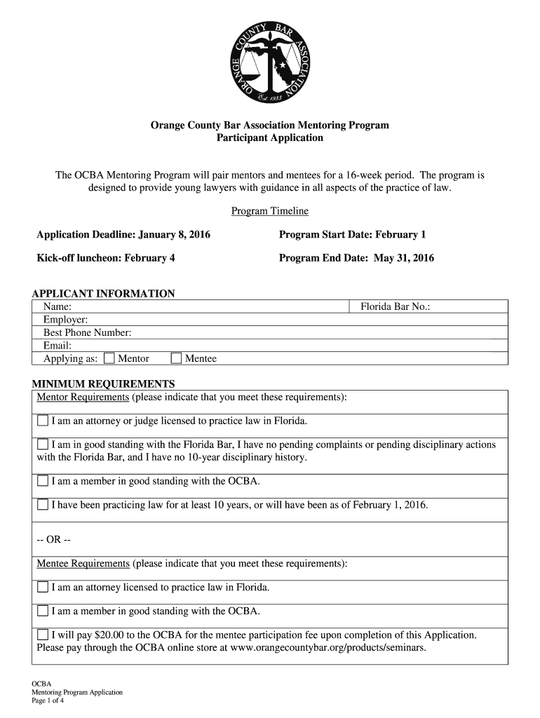 Get the free Orange County Bar Association Mentoring Program Participant - orangecountybar