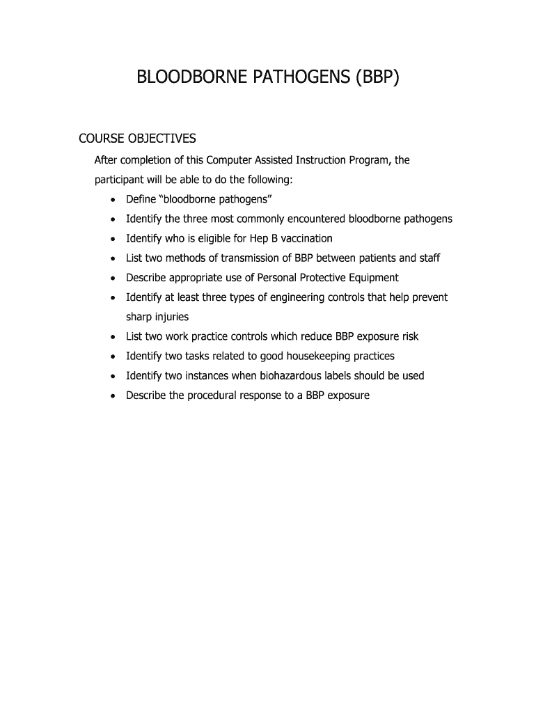 Get the free BLOODBORNE PATHOGENS (BBP)
