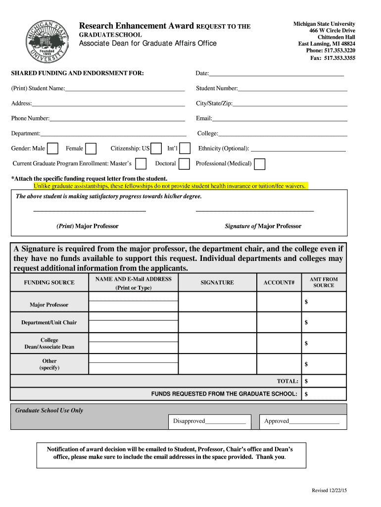 Graduate Student Research Enhancement is not the form you're looking for?Search for another form here.