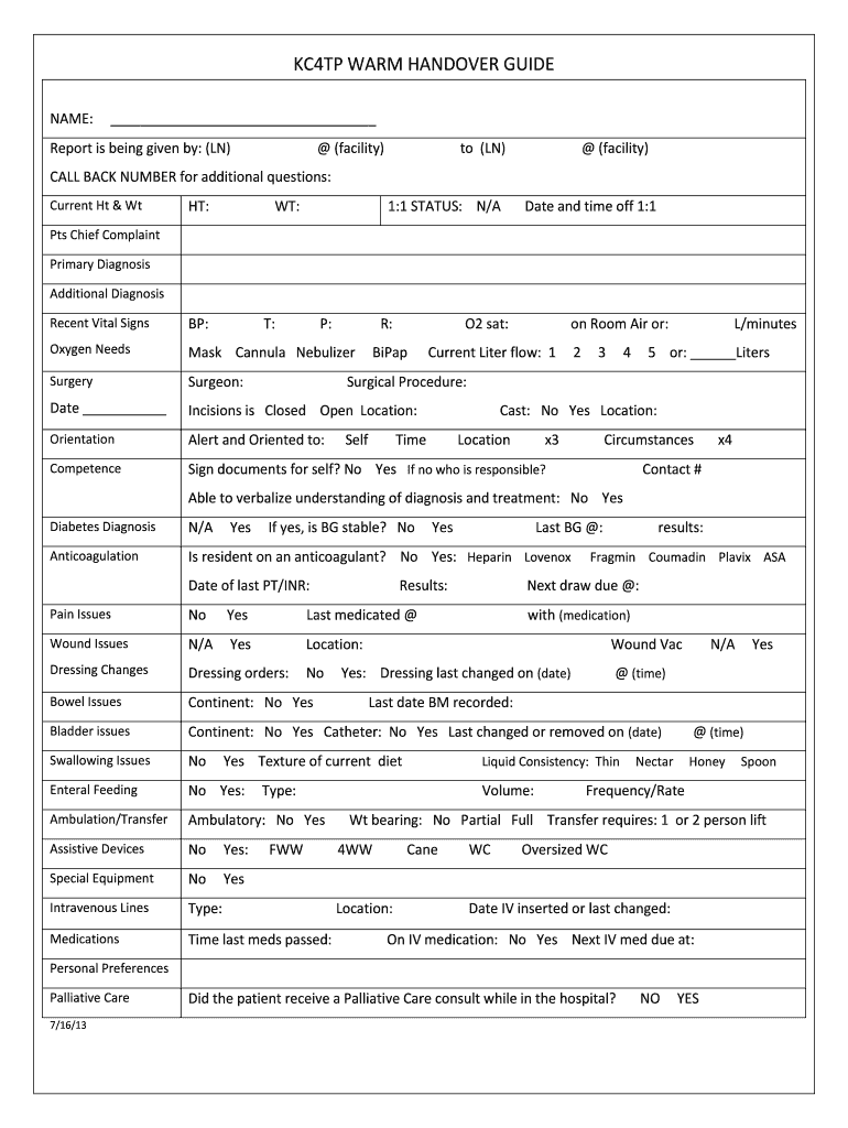 How to fill out kc4tp warm handover guide