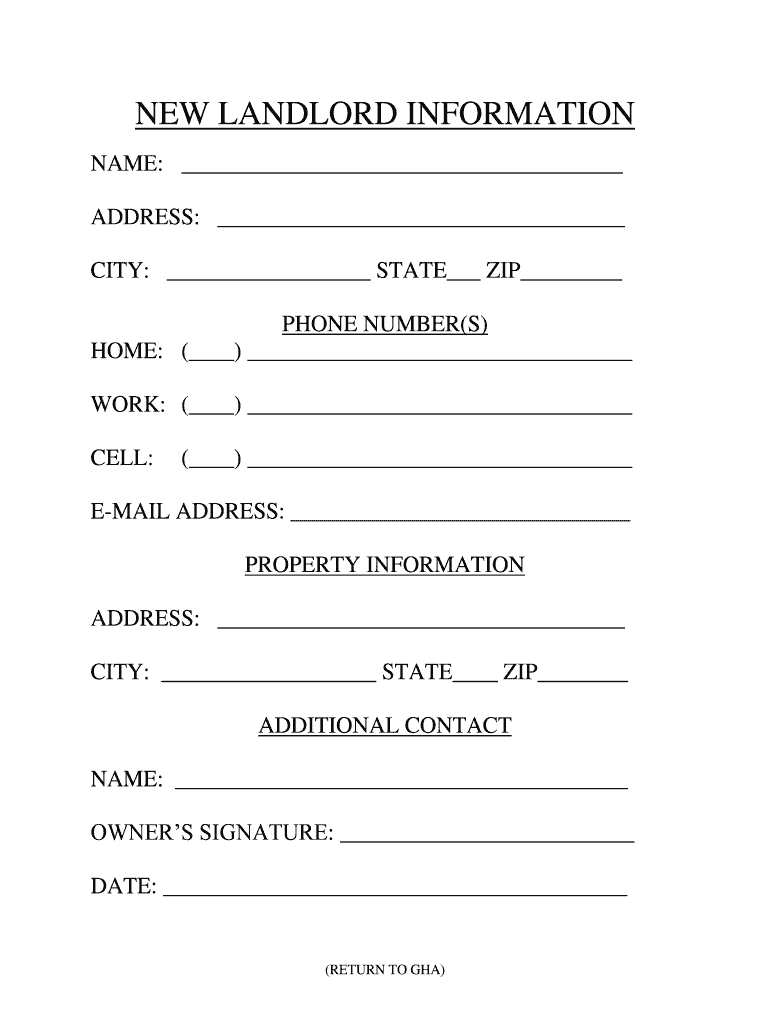 Get the free NEW LANDLORD INFORMATION - Galveston Housing Authority - ghatx