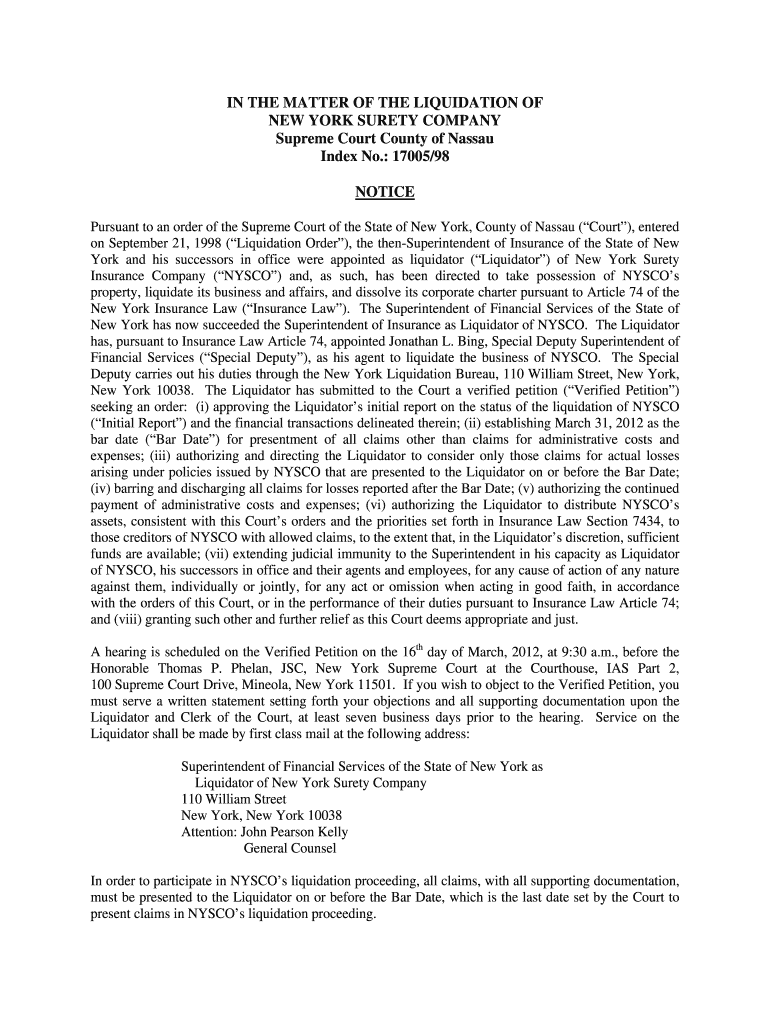 Get the free NEW YORK SURETY COMPANY