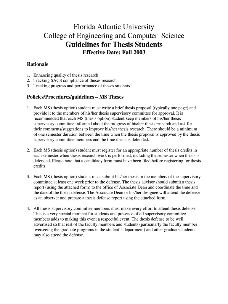 Florida Atlantic University College of Engineering and Computer Science Guidelines for Thesis Students Effective Date: Fall 2003 Rationale 1. Enhancing quality of thesis research 2. Tracking SACS