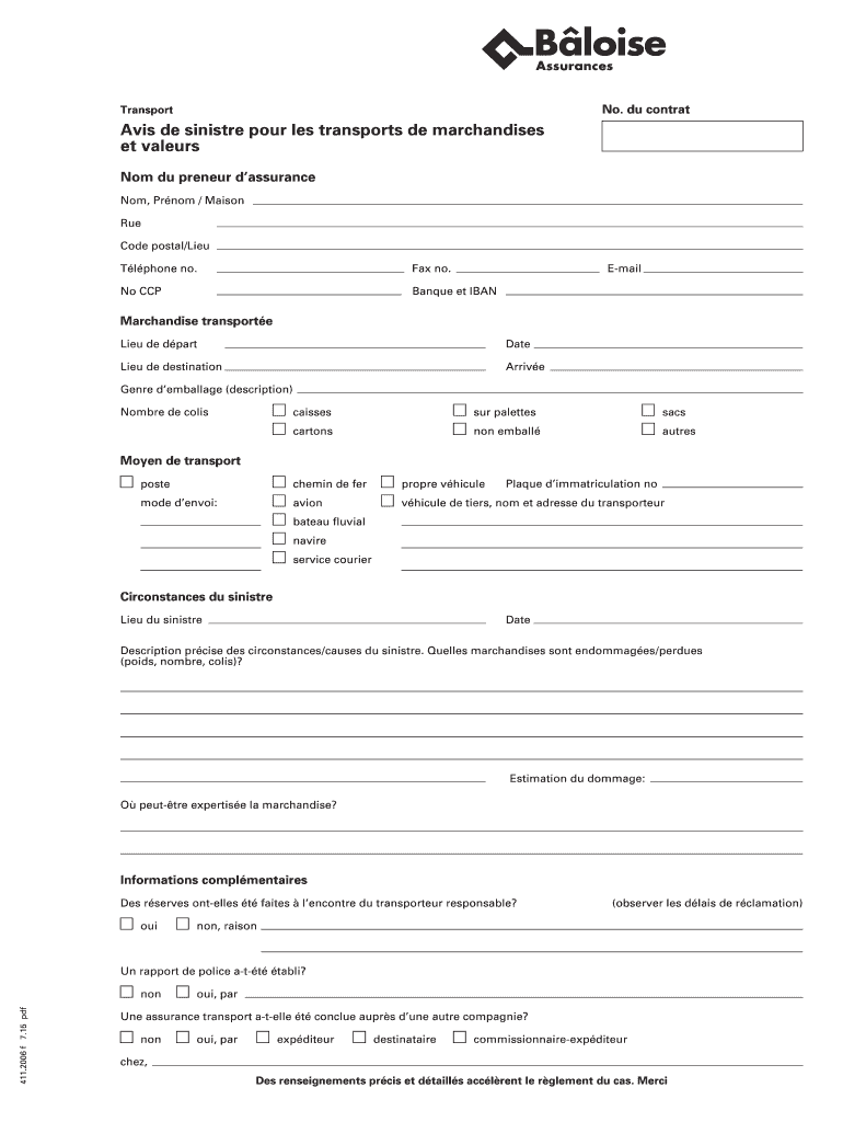 Obtenir le gratuit Transport Avis de sinistre pour les transports de - baloise