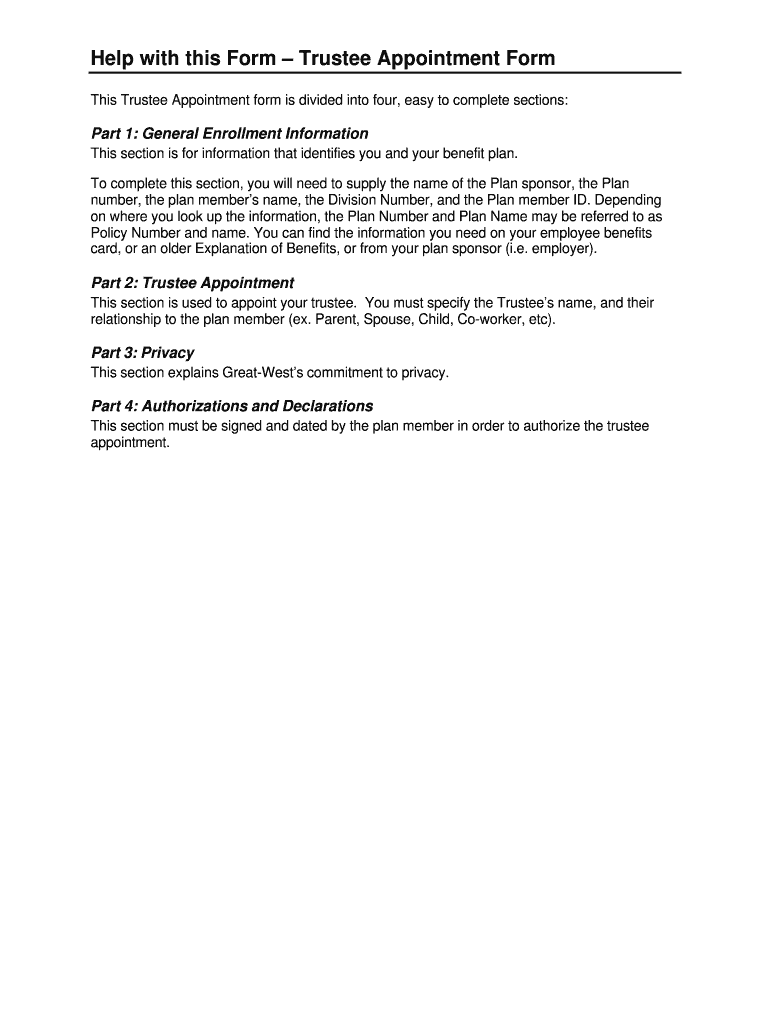 Help with this Form Trustee Appointment Form This Trustee Appointment form is divided into four, easy to complete sections: Part 1: General Enrollment Information This section is for information that