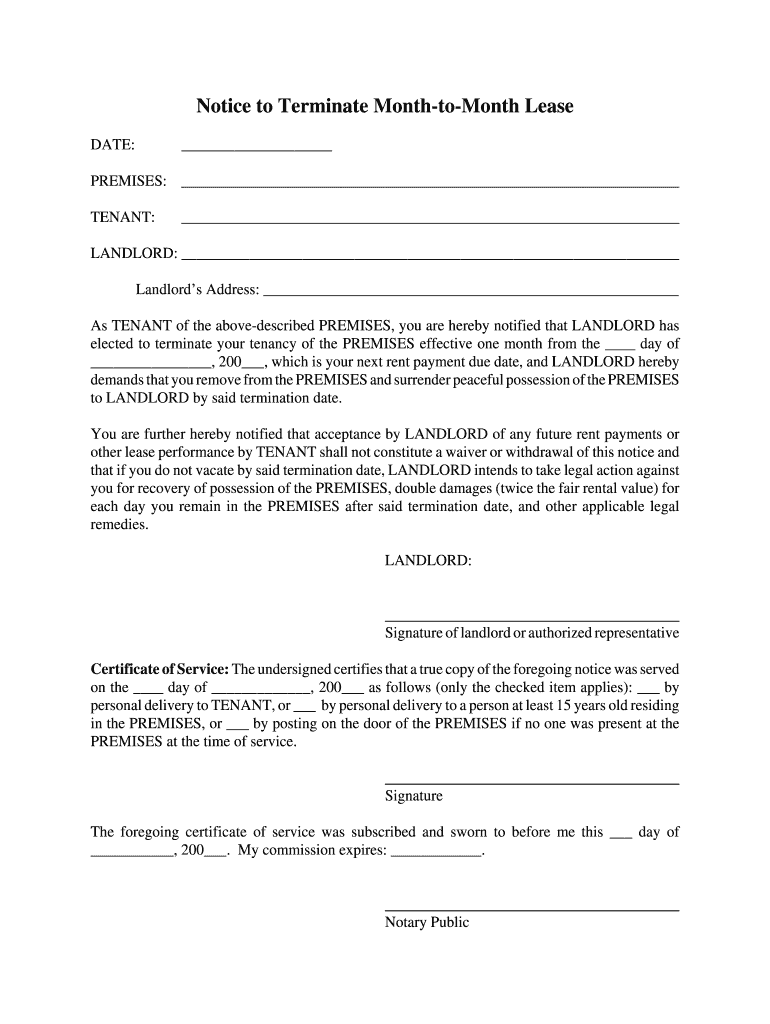 Get the free Notice to Terminate Month-to-Month Lease - Deadbeat Tenant
