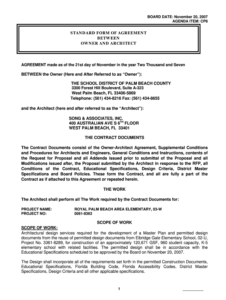 Get the free ARCHITECT AGREEMENT -REVISED 3-1-07 MM Royal Palm ES 1doc