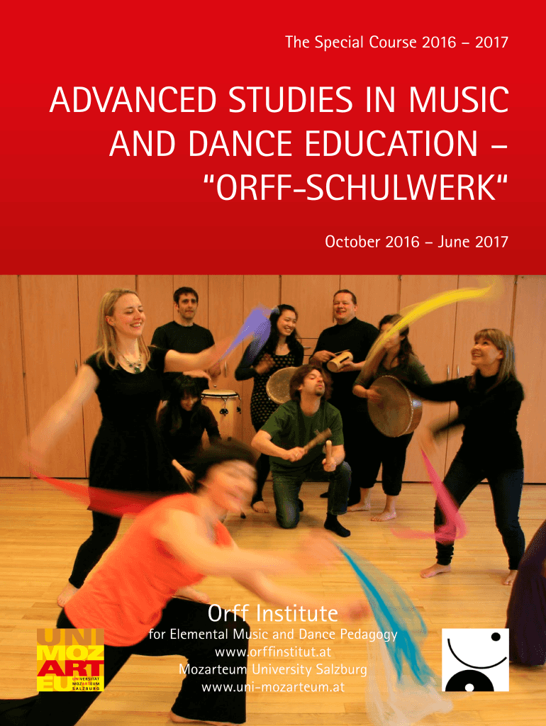 The Special Course 2016 2017 ADVANCED STUDIES IN MUSIC AND DANCE EDUCATION ORFF-SCHULWERK October 2016 June 2017 Off Institute for Elemental Music and Dance Pedagogy www.orffinstitut.at Mozart University
