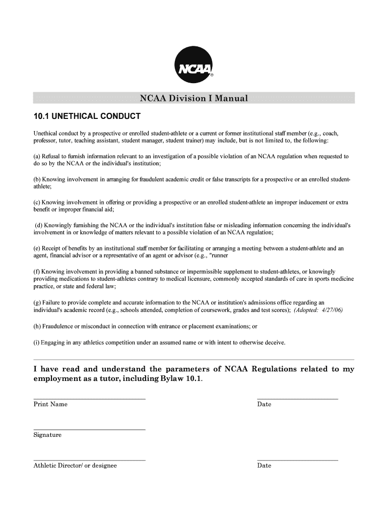 Get the free NCAA Division I Manual 101 UNETHICAL CONDUCT