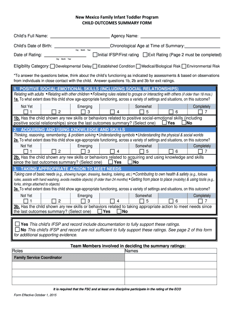 Get the free New Mexico Family Infant Toddler Program CHILD OUTCOMES - cdd unm