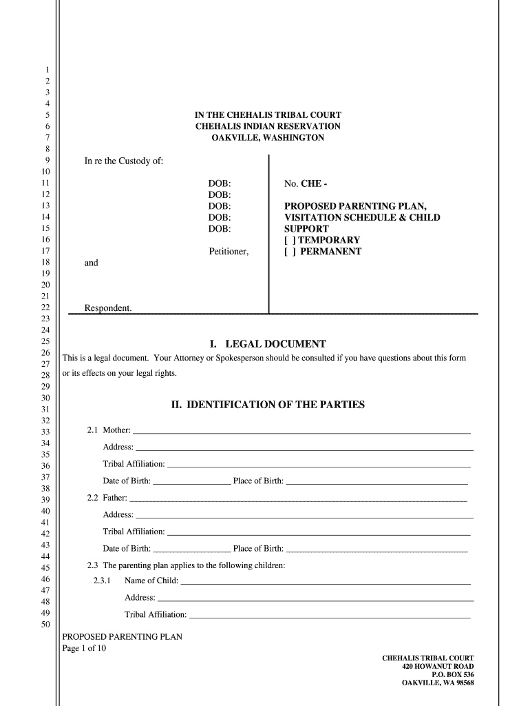 Get the free I LEGAL DOCUMENT IDENTIFICATION OF THE PARTIES - chehalistribe