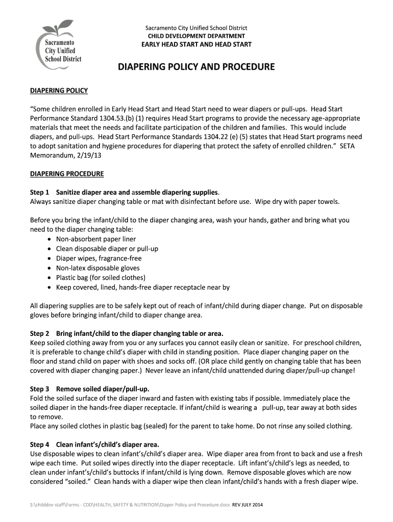 Get the free DIAPERING POLICY AND PROCEDURE