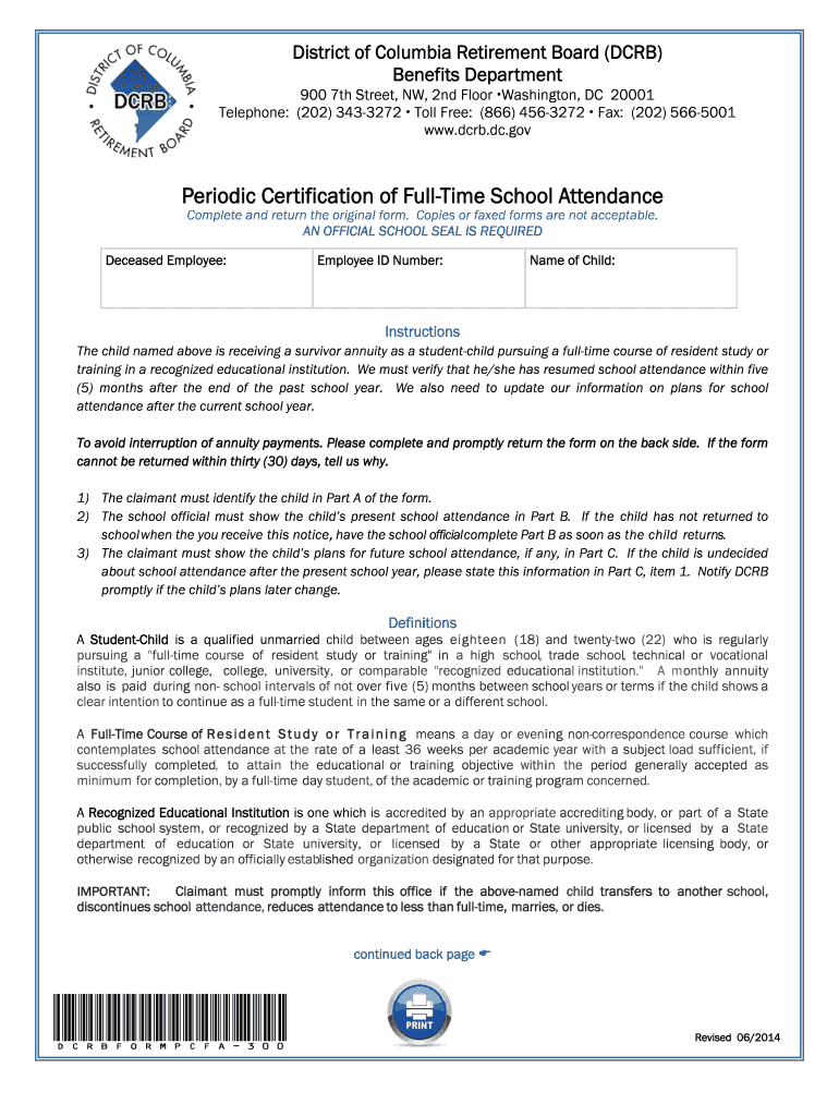 Get the free New Periodic Certification of Full-Time School Attendance - dcrb dc