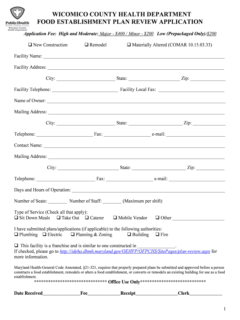 Get the free WICOMICO COUNTY HEALTH DEPARTMENT FOOD ESTABLISHMENT PLAN - wicomicohealth
