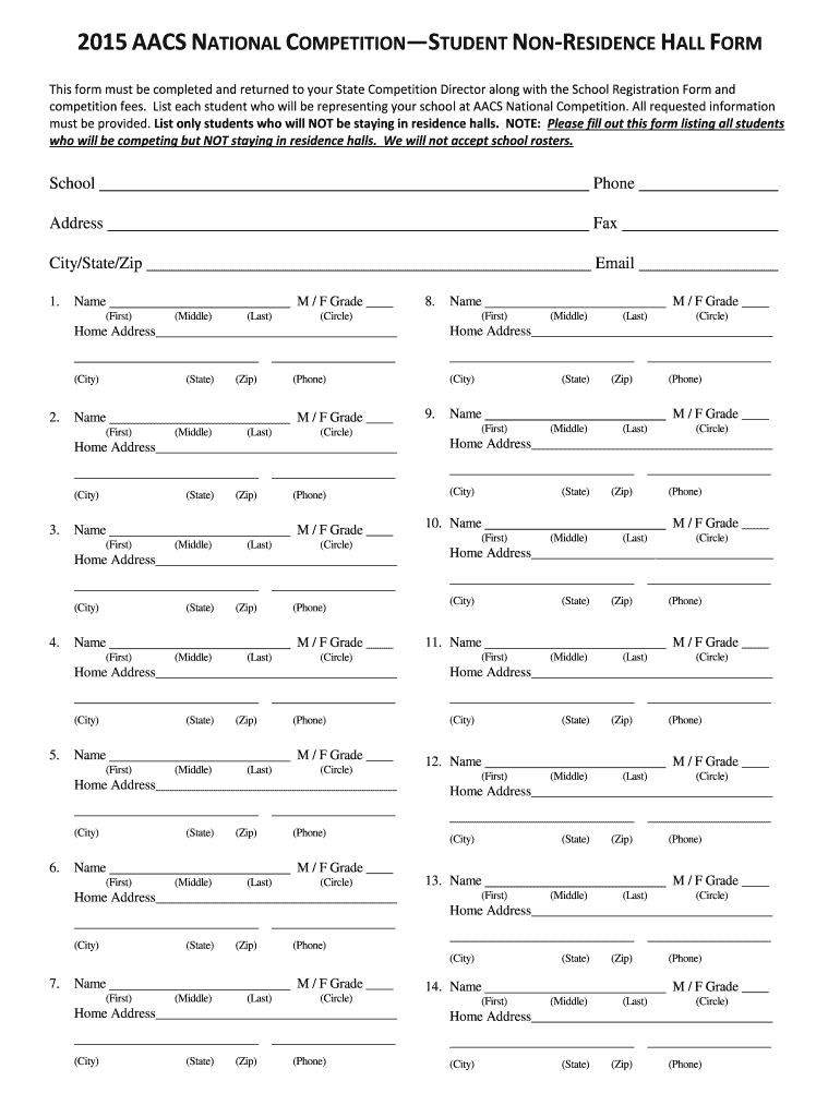 Get the free 2015 AACS NATIONAL OMPETITION STUDENT NON-RESIDENCE ALL ORM - aacs