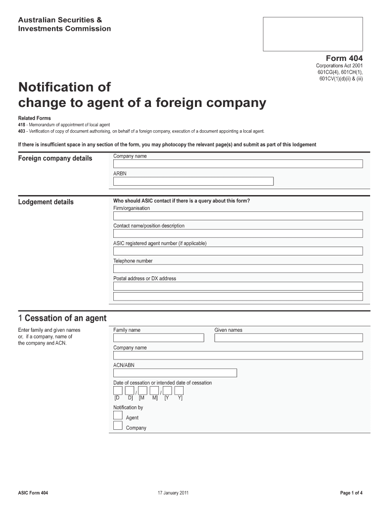 Get the free Notification of change to agent of a foreign company - ASIC