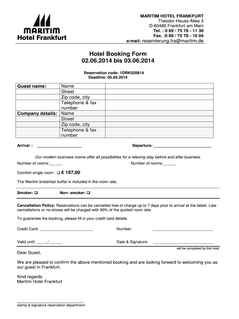Get, Create, Make and Sign hotel booking form 0206