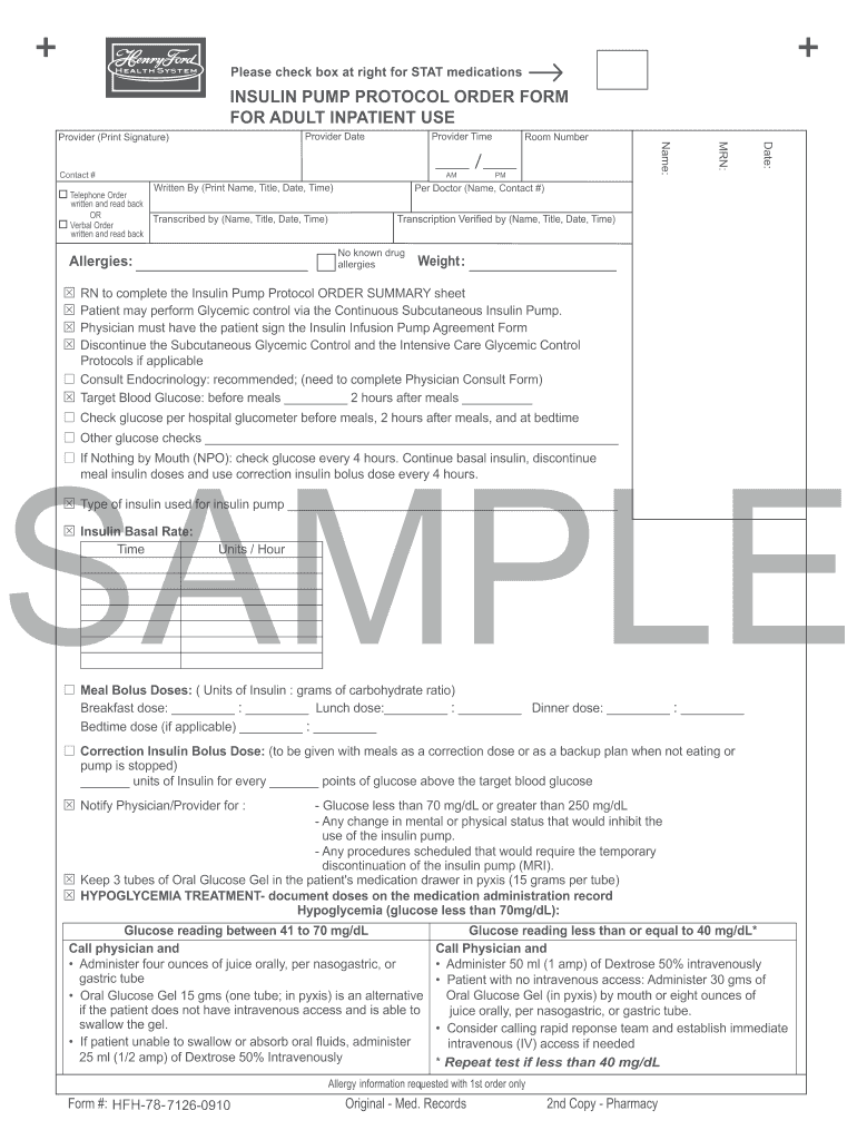 Get the free INSULIN PUMP PROTOCOL ORDER FORM FOR ADULT INPATIENT USE - hfhs-formslibrary