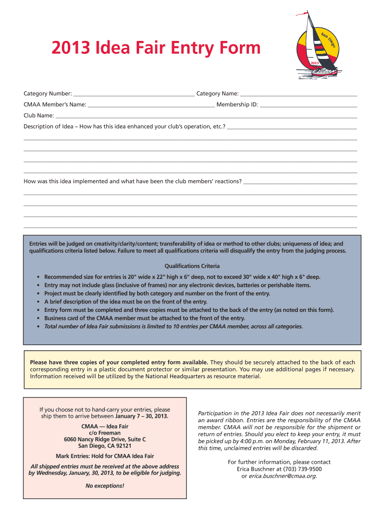 Club managers, industry professionals, and vendors are required to file 2013ideafair - flcmaaorg if they wish to participate in the event or submit their ideas for consideration.