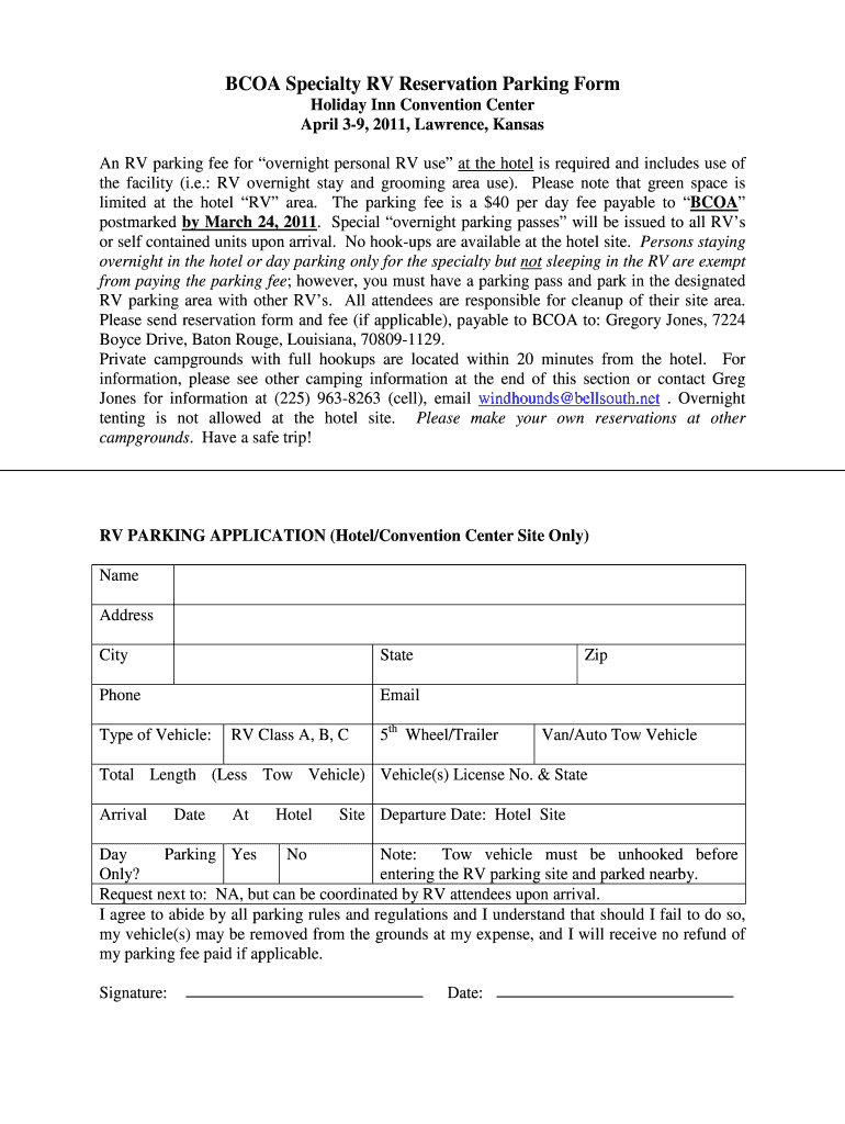 BOA Specialty RV Reservation Parking Form