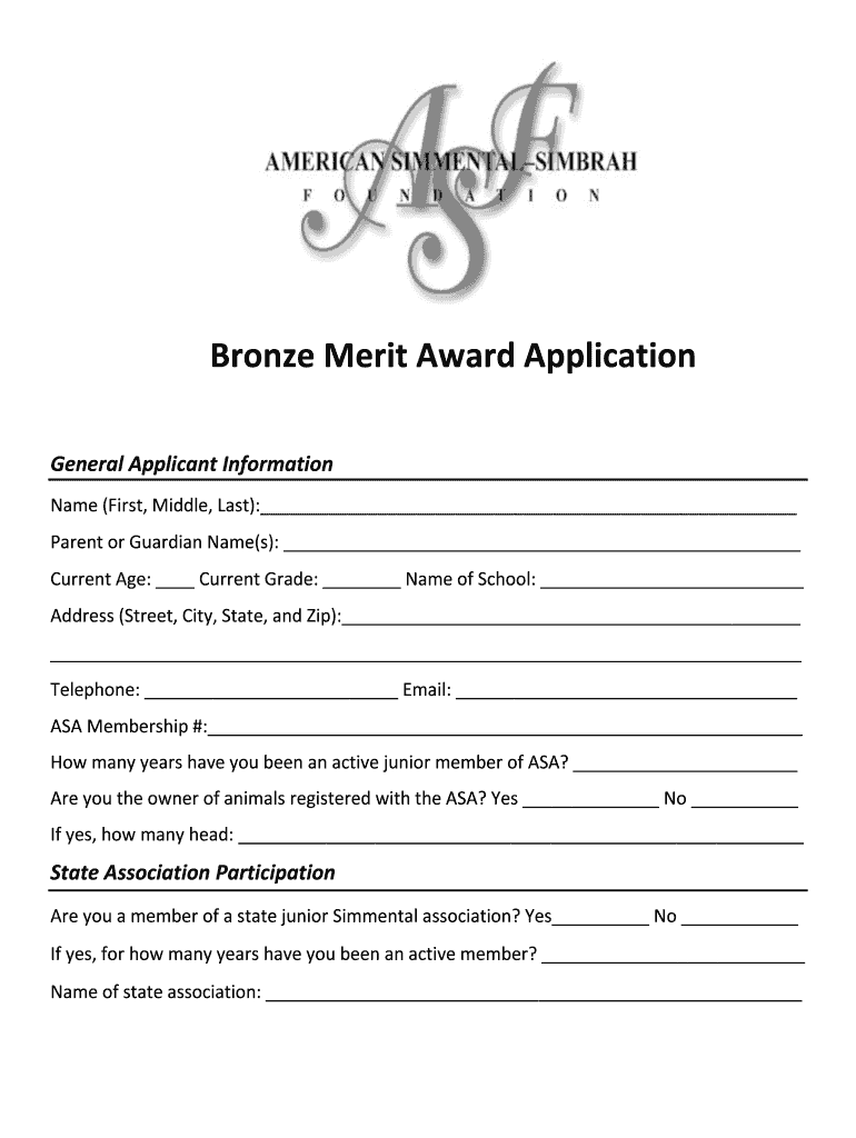 Bronze Merit Award Application General Applicant Information Name (First, Middle, Last): Parent or Guardian Name(s): Current Age: Current Grade: Name of School: Address (Street, City, State, and Zip):