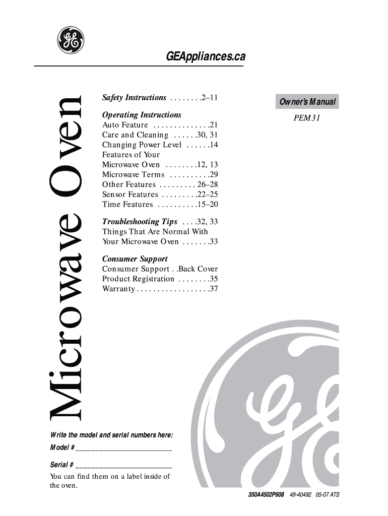 Fill out your geappliancesca microwave oven online with pdfFiller!