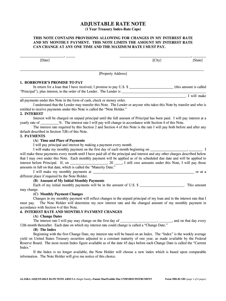 Generally, borrowers who enter into an Adjustable Rate Mortgage (ARM) or similar financial instrument must complete and file the Adjustable Rate Note as part of the loan documentation.