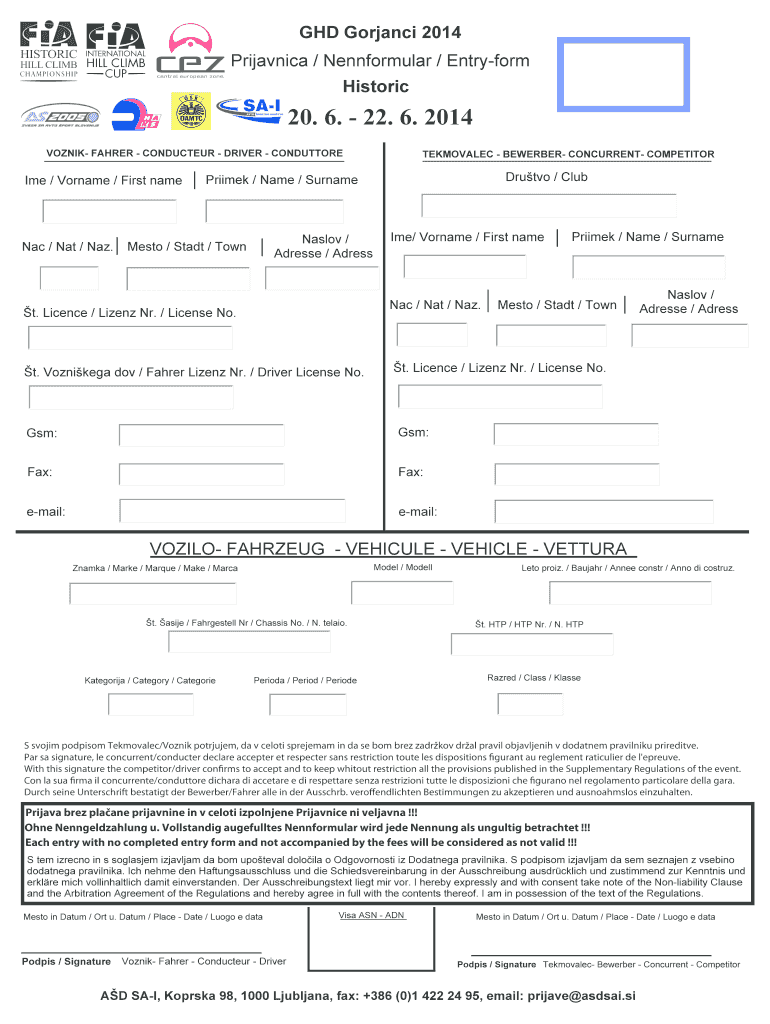 GOD Organic 2014 Britannica / Nennformular / Entry form Historic 20. 6. 22. 6. 2014 WOZNIAK FAIRER CONDUCT EUR DRIVER CONDUCTOR IME / Surname / First name NAC / Nat / Nazi. TEKMOVALEC BERBER CONCURRENT
