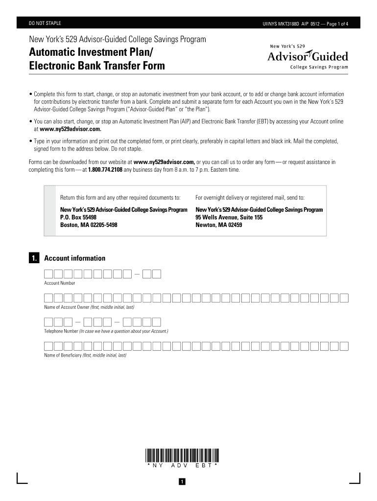 How to fill out New York's 529 Advisor-Guided College Savings Program Automatic Investment Plan/Electronic Bank Transfer Form?