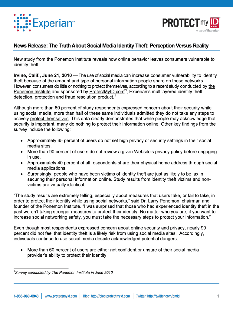 Get the free News Release: The Truth About Social Media Identity Theft: Perception Versus Reality