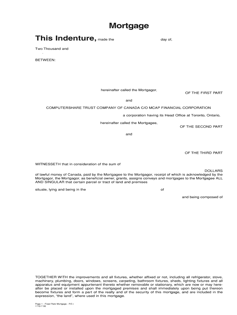 Mortgage This Indenture, made the day of, Two Thousand and. BETWEEN: hereinafter called the Mortgagor, OF THE FIRST PART and COMPUTERATE TRUST COMPANY OF CANADA C/OM CAP FINANCIAL CORPORATION a corporation