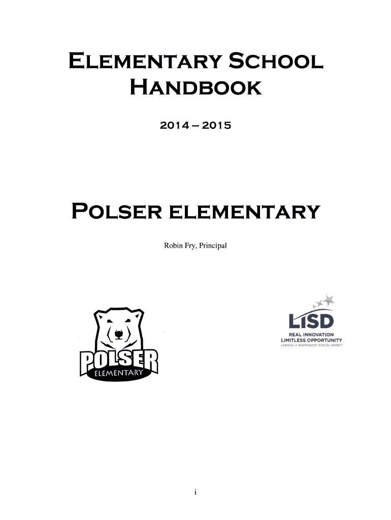 Elementary School Handbook 2014 2015 Poser elementary Robin Fry, Principal I Table of Contents PREFACE .......................................................................................................................................
