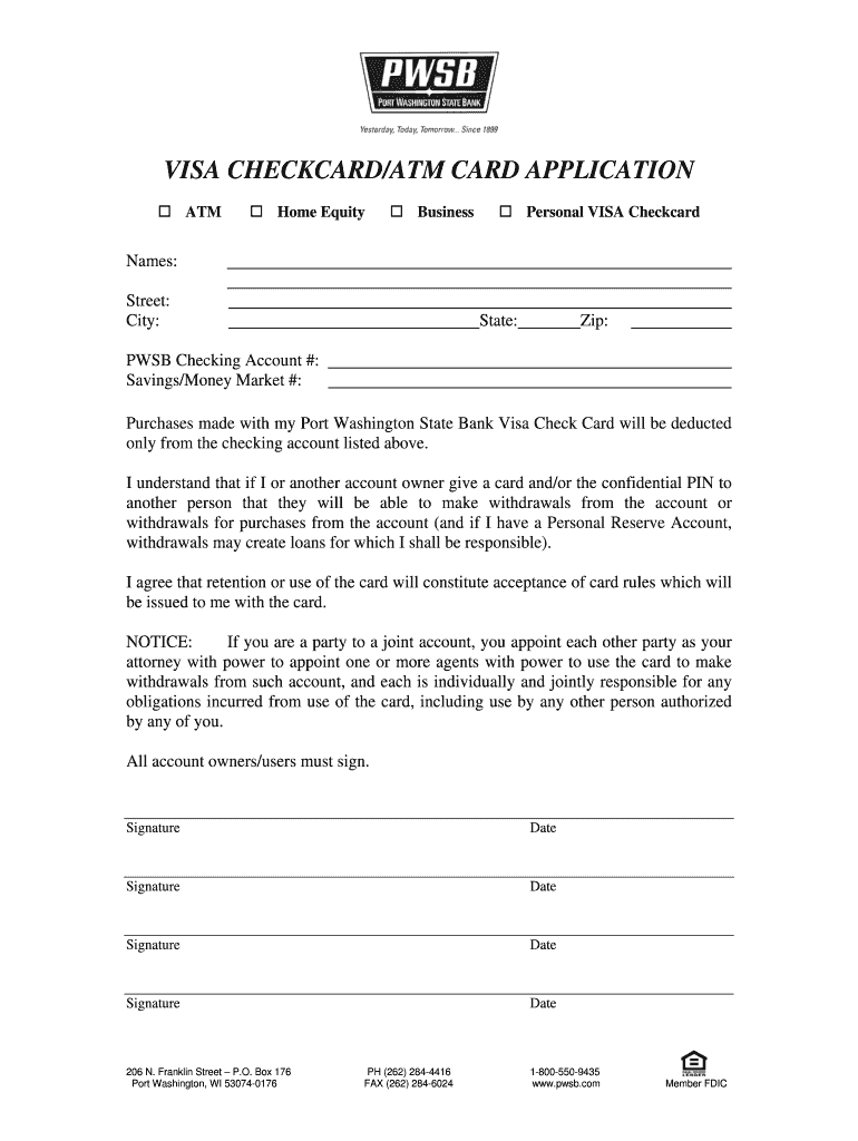 Fill out your visa checkcardatm card application online with pdfFiller!