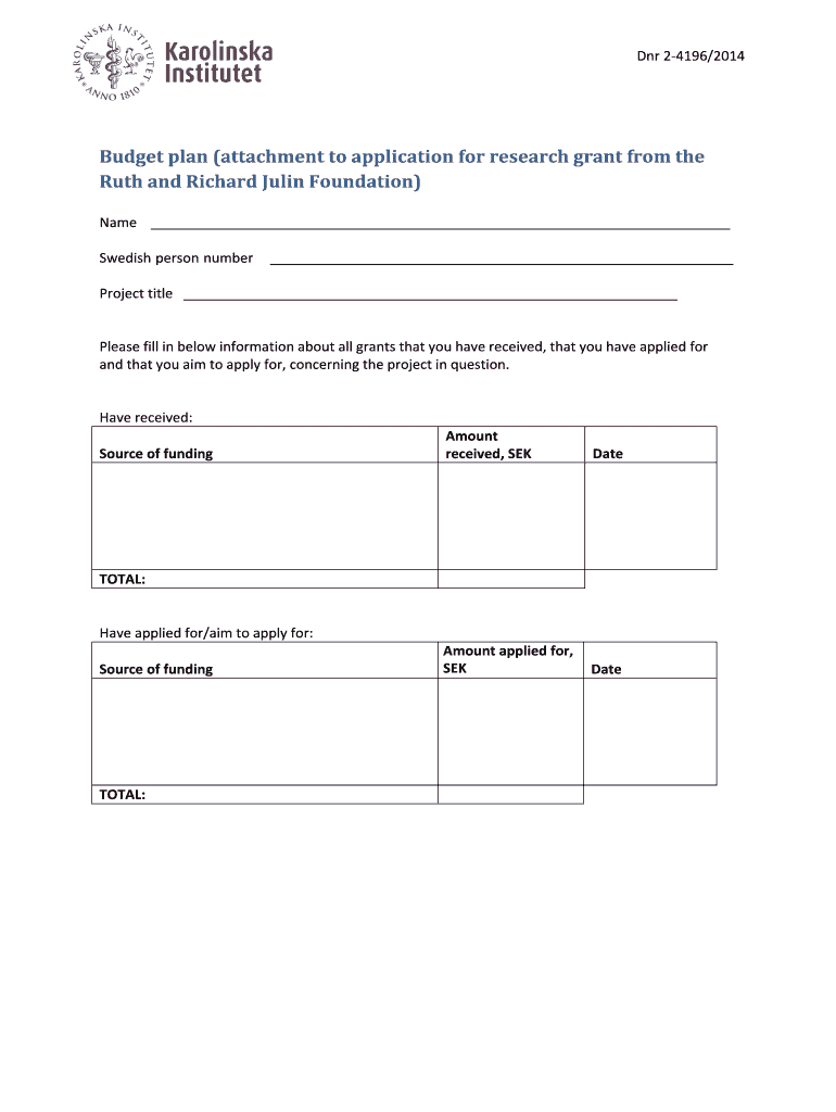 Get the free Budget plan attachment to application for research grant
