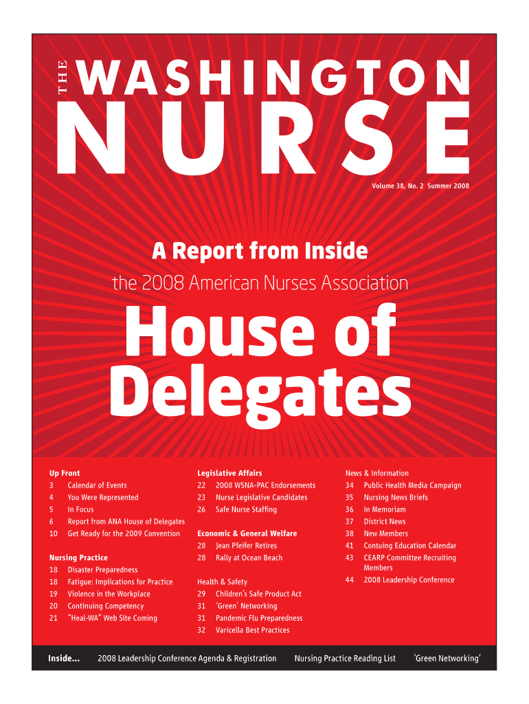 Volume 38, No. 2 Summer 2008 Up Front 3 Calendar of Events 4 You Were Represented 5 In Focus 6 Report from ANA House of Delegates 10 Get Ready for the 2009 Convention Nursing Practice 18 Disaster