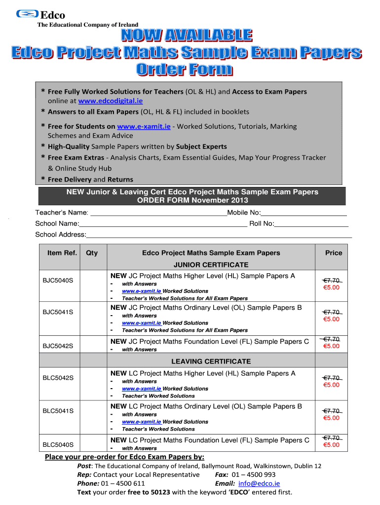 Eco The Educational Company of Ireland * Free Fully Worked Solutions for Teachers (OF & HL) and Access to Exam Papers online at www.edcodigital.ie * Answers to all Exam Papers (OF, HL & FL) included