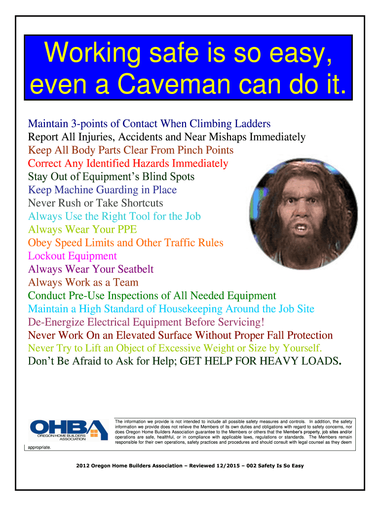 Get the free Working safe is so easy even a Caveman can do it