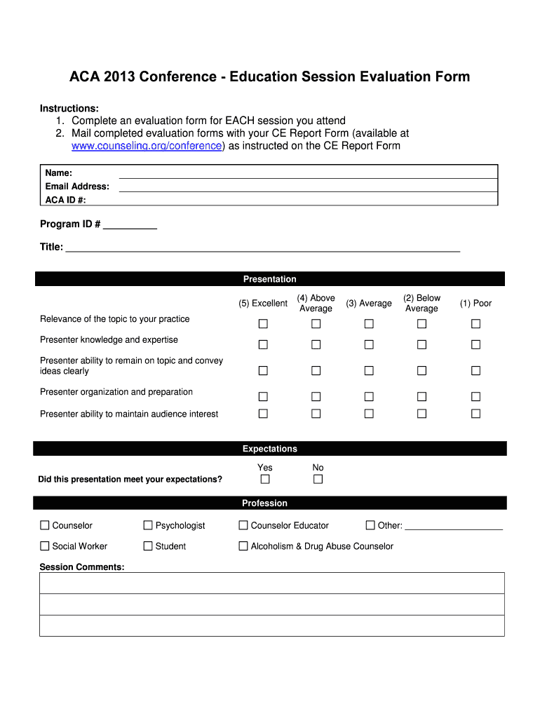 Get the free ACA 2013 Conference - Education Session Evaluation Form - counseling