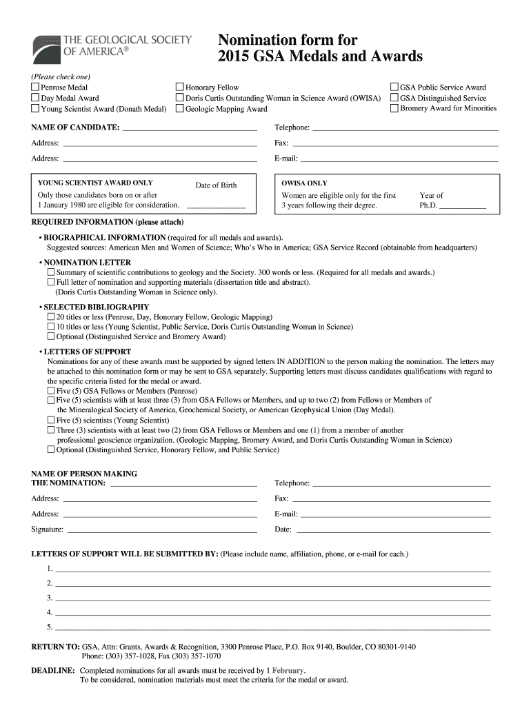 Get the free Nomination form for 2013 GSA Medals and Awards - Geological ... - geosociety
