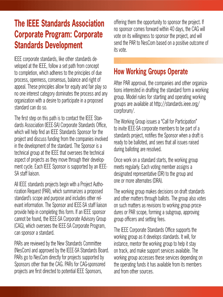 Get the free The IEEE Standards Association Corporate Program: Corporate Standards Development - ...