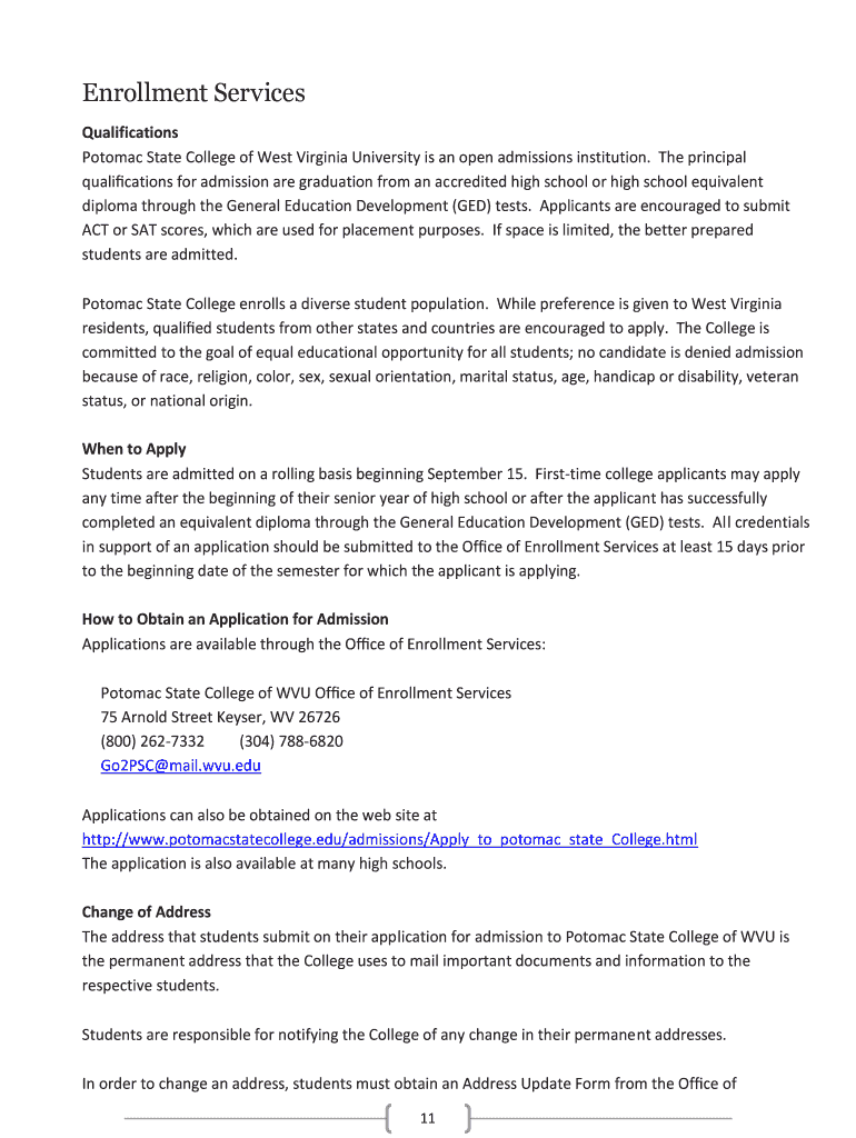 Get the free Potomac State College of West Virginia University is an open admissions institution