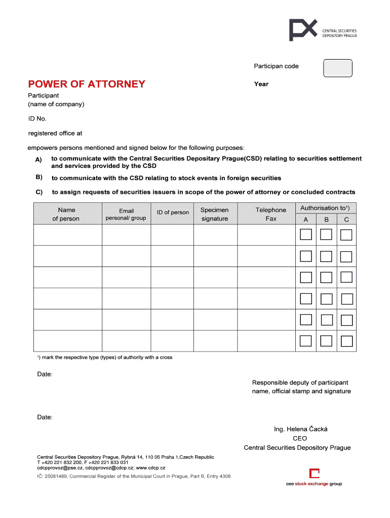 Get the free POWER OF ATTORNEY - centraldepositorycz