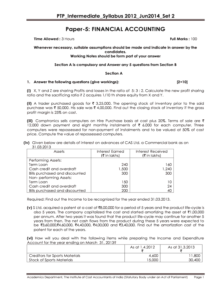 PTP_Intermediate_Syllabus 2012_Jun2014_Set 2Paper5: FINANCIAL ACCOUNTING