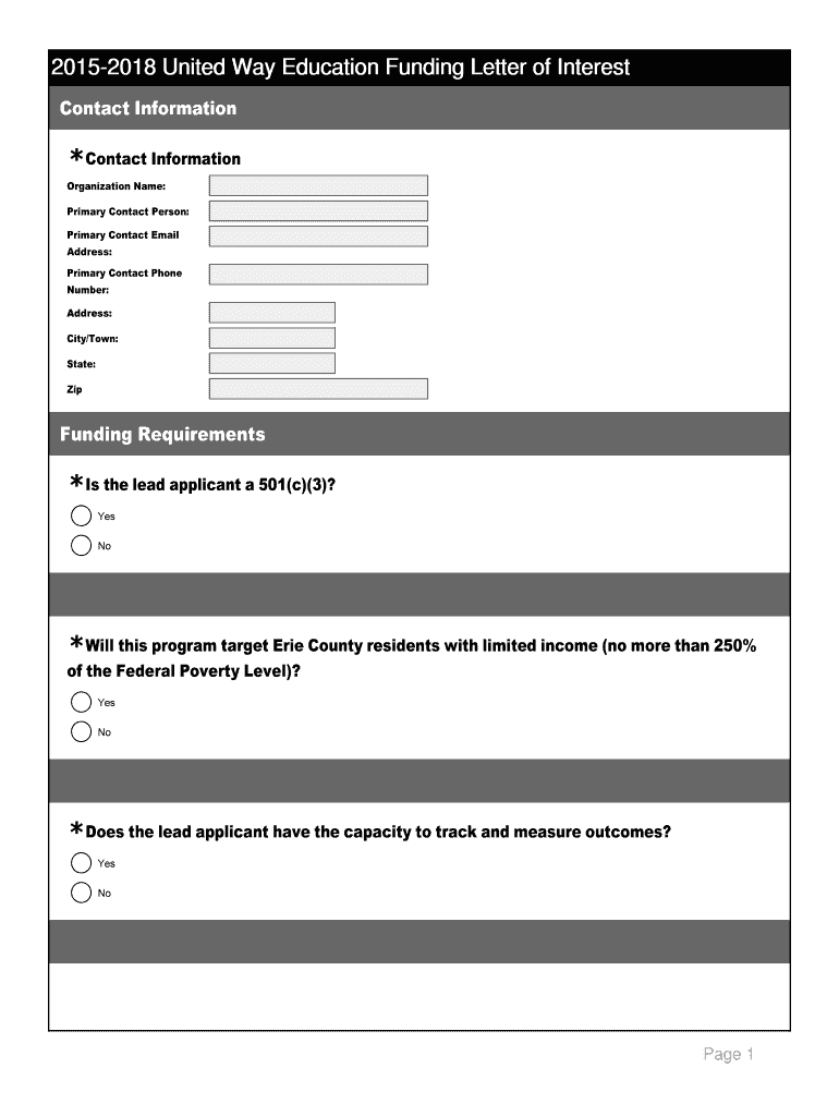Get the free 2015-2018 United Way Education Funding Letter of Interest - unitedwayerie