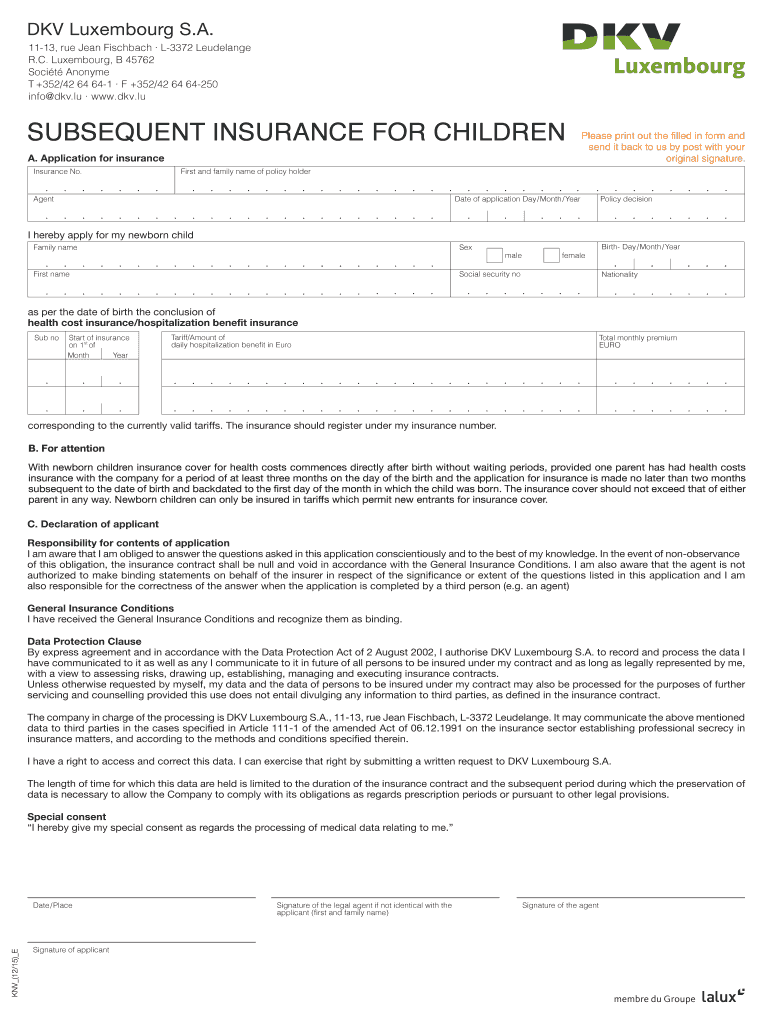 Get the free Additional insurance for children form - DKV Luxembourg SA