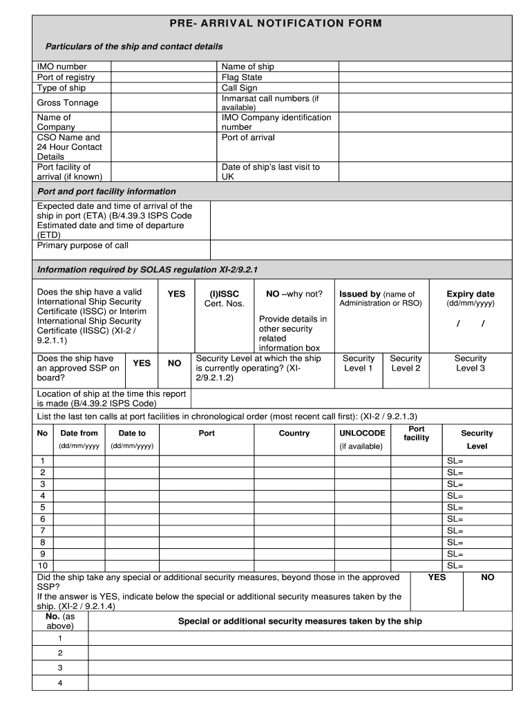 Get the free PRE- ARRIVAL NOTIFICATION FORM - bbristolportcoukb