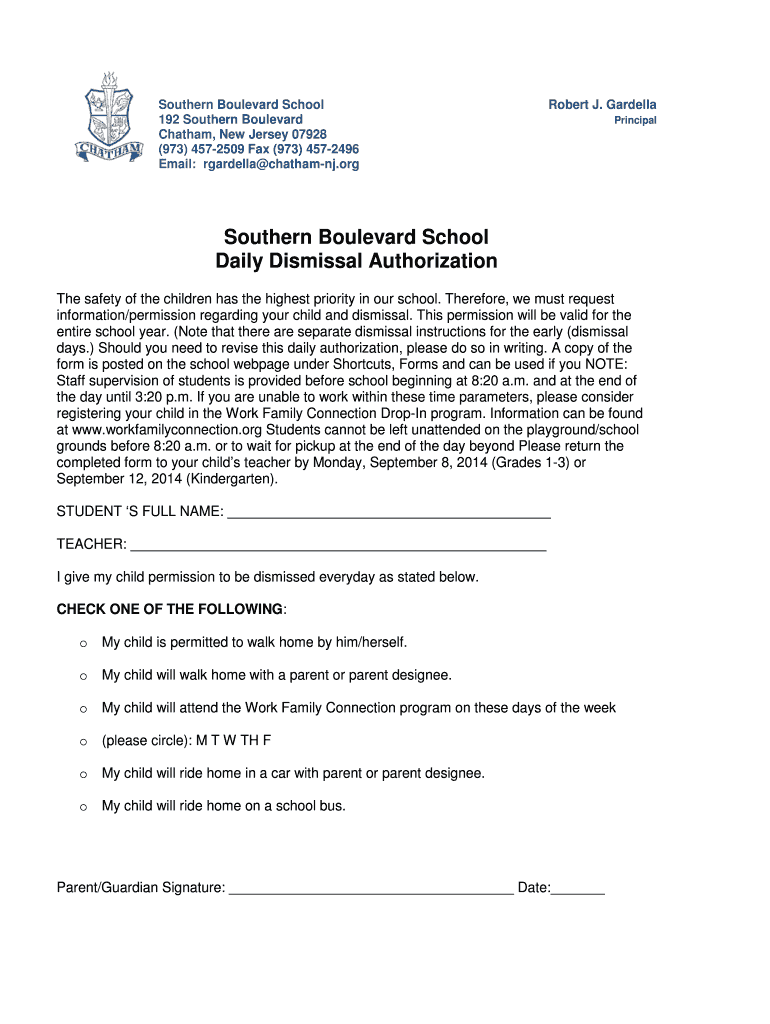 Get the free Daily Dismissal Authorization - chatham-nj
