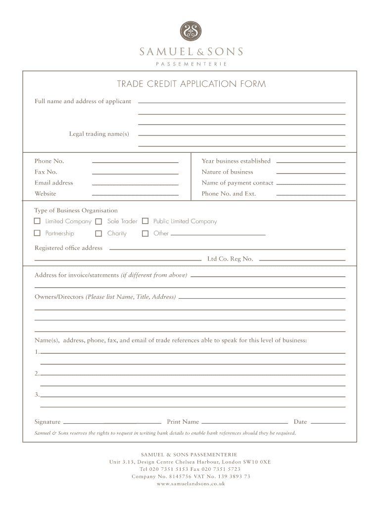 Get the free TRADE CREDIT APPLICATION FORM - Samuel amp Sons Passementerie